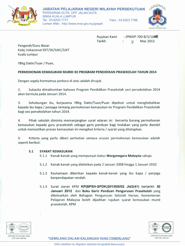 Related : Syarat Kemasukan Pra Sekolah - Permohonan Kemasukan Ke Prasekolah Kpm Tahun 2019 Online Pendidikanmalaysia Com : Syarat kemasukan dan kelayakan kolej vokasional dan sekolah teknik..